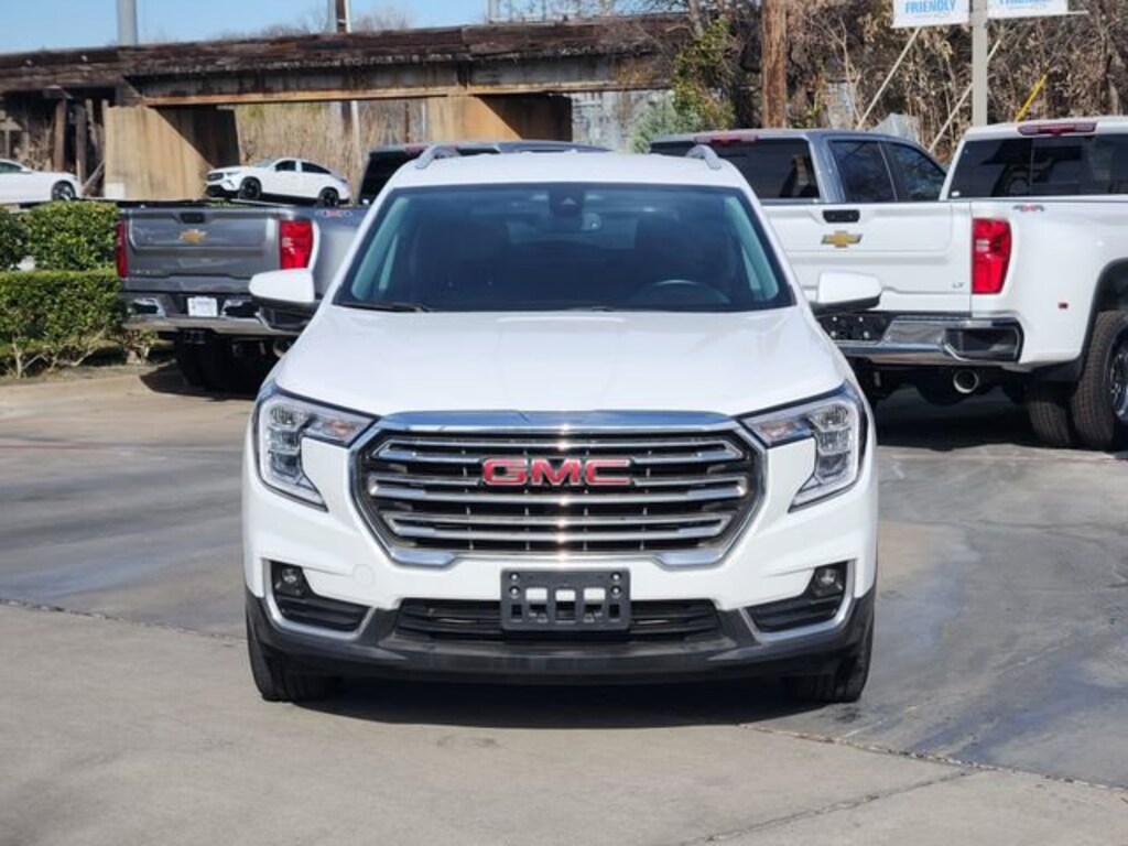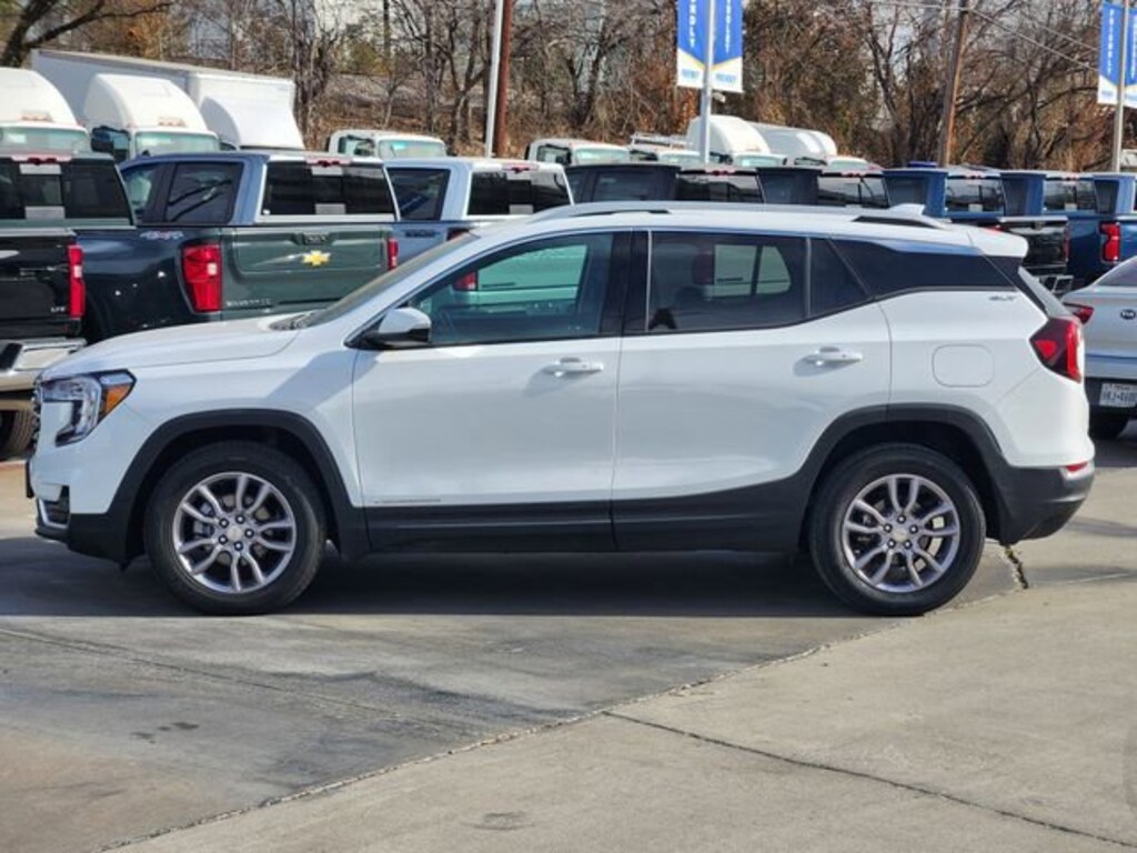 Experience the exceptional 2024 GMC Terrain SLT, a versatile and well-equipped SUV that combines style, performance, and advanced technology. With its sleek white exterior and a powerful 1.5L DOHC engine paired with a 9-Speed Automatic transmission and All-Wheel Drive, this Terrain is ready to take on any adventure.This Terrain SLT comes equipped with: Power Liftgate License Plate Front Mounting Package Preferred Equipment Group 4SADesigned with your comfort and convenience in mind, the Terrain SLT offers a host of premium features, including: 8-Way Power Driver Seat Adjuster Heated Front Seats Perforated Leather-Appointed Seat Trim Wireless Apple CarPlay/Wireless Android Auto 6-Speaker Audio System Dual-Zone Automatic Climate Control Rear Window Defroster Bluetooth® for PhoneThe Terrain SLT's impressive fuel efficiency, with an EPA-estimated 23 MPG in the city and 28 MPG on the highway, makes it an excellent choice for your daily commute or weekend getaways. Its spacious interior and versatile cargo area provide ample room for all your belongings, while the 4-Wheel Disc Brakes with ABS and Electronic Stability Control ensure a confident and secure driving experience.Safety is a top priority in the Terrain SLT, with features like Dual Front Impact Airbags, Dual Front Side Impact Airbags, Overhead Airbag, Occupant Sensing Airbag, and OnStar® and GMC Connected Services keeping you and your passengers protected.Elevate your driving experience with the 2024 GMC Terrain SLT. This exceptional SUV offers the perfect blend of style, performance, and technology to meet your needs. Visit our showroom today and let us demonstrate how this Terrain can enhance your daily life.